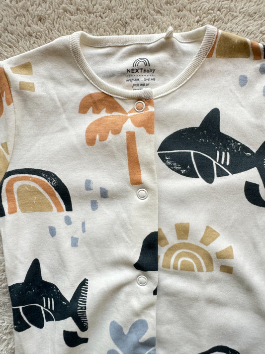 Jumper - Multi coloured shark on white