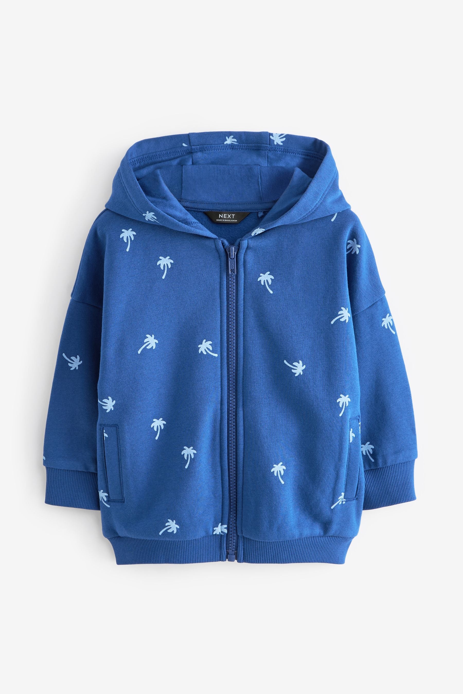Cobalt Blue Palms All Over Print Jersey Zip Through Hoodie